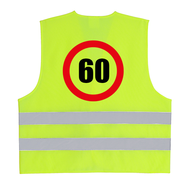 Vidám megkülönböztető mellény 60. születésnapra. Lepd meg barátodat, hogy kitűnjön a tömegből! Ebben biztosan senki nem téveszti szem elől !