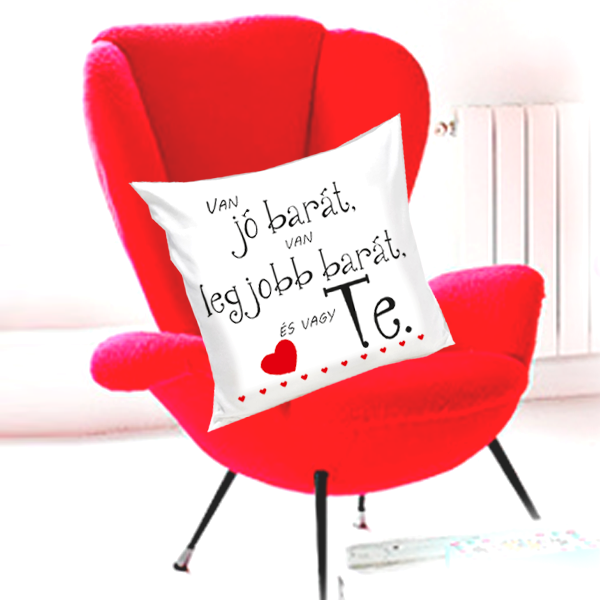Nagyobb méretű szíves párna. Szöveg: van jó barát, van legjobb barát és vagy te.